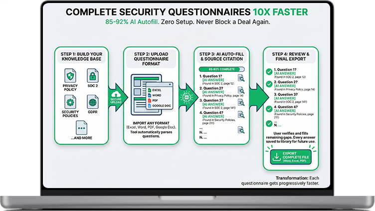 Complete security questionnaires 10x faster. From 20 hours to 2.